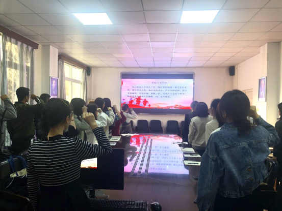 活动伊始,由组织委员李紫薇同志带领全体党员重温了入党誓词,然后全体党员缴纳党费,学习党章,重温入党初心。