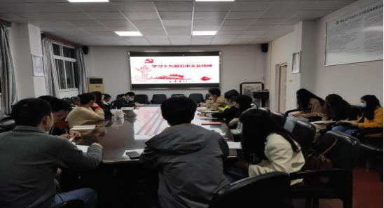 四楼会议室召开11月主题党日活动,主题为深入学习党的十九届五中全会精神。此次活动由研究生第一党支部书记唐熙隆同志主持,院团委书记邹浩同志出席会议。
