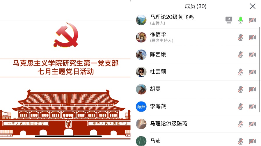 研究生第一党支部以线上形式举行了7月份主题党日活动,开展一系列内涵丰富的理论学习。国产自拍