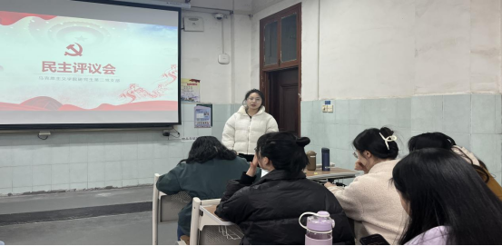 五楼509教室开展主题党日活动,并开展2022年度组织生活会、党员民主评议会。研究生第二党支部全体党员参加会议,支部宣传委员杨韵怡同志主持会议。