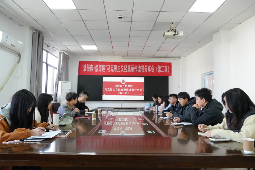 在分享环节,同学们结合专业所学与社会观察,从多维度畅谈读书感悟。汇报既有理论深度,又见青春锐气,彰显出“以读促思、以思促行”的研学实效。互动阶段气氛活跃,师生之间问答深入、教学相长,在观点碰撞中进一步深化了对原著原理的理解,凝聚起思想共识。