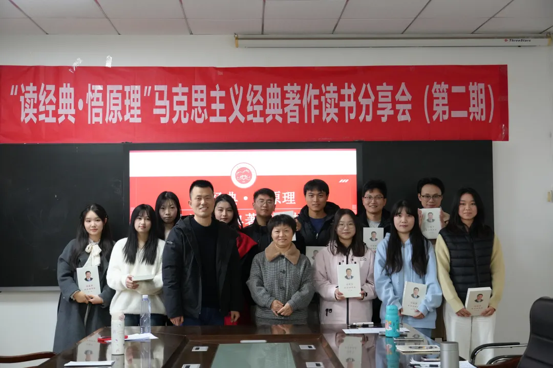 五楼会议室成功举行。思想政治理论课教研部主任于桂凤教授、团委书记邹浩老师受邀参加,来自三个专业的硕士研究生齐聚一堂,共沐书香、共话真理,在思想交融中凝聚理论认同、筑牢信仰之基。