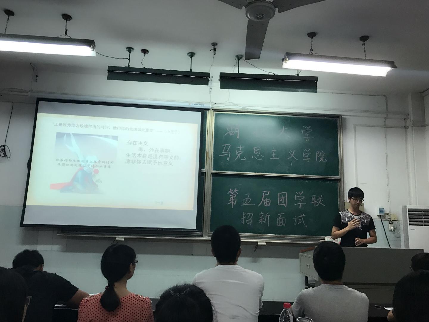 第五届团学联干事招新面试在教2-210拉开帷幕,团委书记邹浩老师及团学联主要学生代表出席了本次面试。