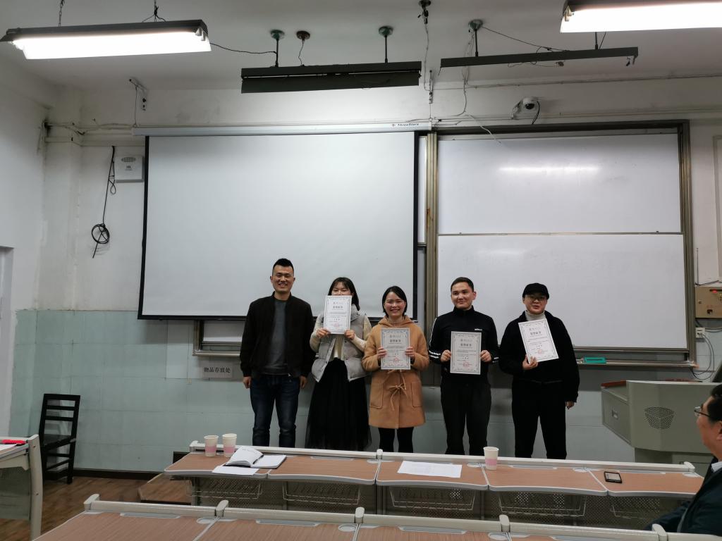交流会尾声,钱校长以及邹浩老师为获奖团队颁发证书并合影留念,随后钱校长发表讲话指出,18级同学要认真学习17级同学的经验,争取2020年暑期社会实践取得更好的成绩!