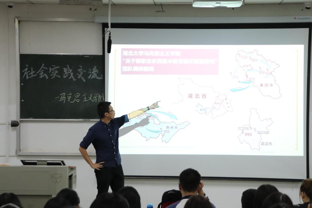 活动主要分为以下环节,2016级团队代表交流社会实践心得、2017级学生提问求经验、邹浩老师进行总结并颁奖。16级八个团队代表以PPT展示的方式分别介绍了自己所在团队的准备流程、在实际调研过程中碰到的问题,并总结反思了调研过程中的不足。每个团队代表的精彩发言,都为17级同学提供了一些宝贵经验与有价值的建议。