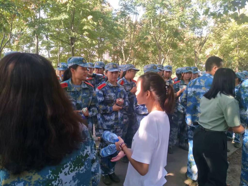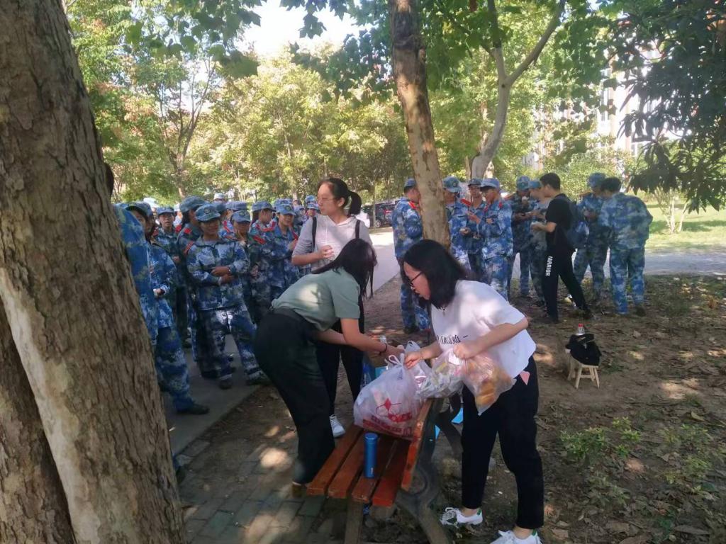 9月23日上午,国产自拍 “中秋探望新生活动”在国产自拍 阳逻校区问津食堂外顺利举行,国产自拍 团学联成员和17级学生代表与正在军训的18级思想政治教育专业的学生进行面对面交流,并送去了水、月饼、零食等中秋节的祝福与慰问。