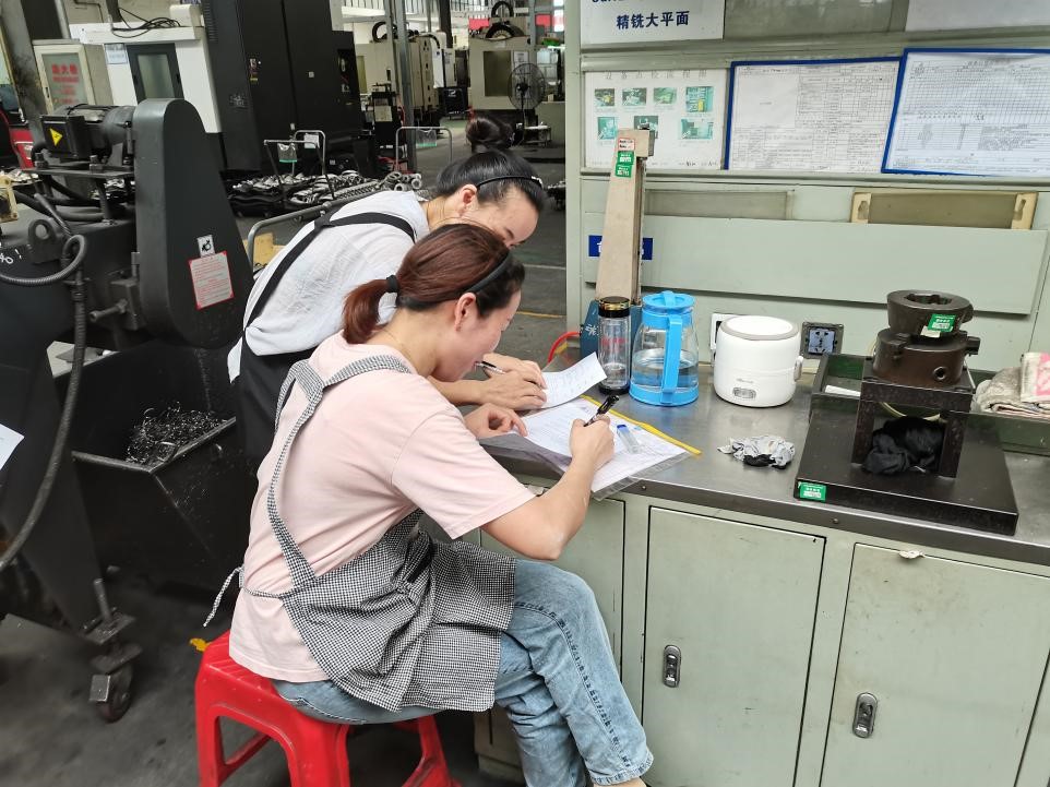 (图为仝鑫精密锻造公司的员工正在填写问卷)