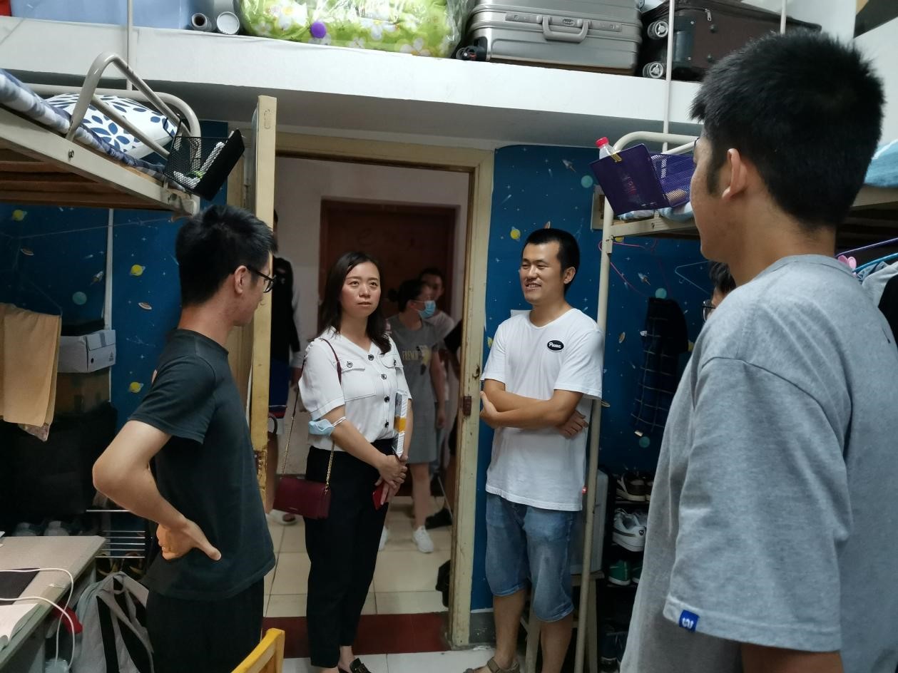 的关怀。她嘱咐同学们,当前国内疫情呈多点零星散发,同学们要做好防护工作,遇到发热等紧急情况第一时间和班主任联系;考研备考时间紧迫,但也要劳逸结合,注意防暑降温;利用假期,强化专业知识学习。随后,院党委副书记晏妮一行前往一期学生公寓、五栋宿舍楼看望慰问了部分留校研究生。
