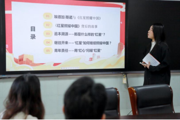 宣讲团成员刘卓凌以文字、图片、视频、讲解相结合的方式讲述作者埃德加·斯诺编写《红星照耀中国》的中国之旅,从追本溯源、继往开来与青年责任三个方面进行了学理阐释。