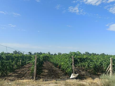 实践团队通过参观当地特色农庄、葡萄种植地,重点考察当地农业的发展。团队成员走入葡萄藤架之下,观察葡萄的生长情况、了解农户的作业状况,并走访了葡萄种植园管理人员,得知昌吉州的农业产业早已依托相关科学技术,通过联合收割机、无人机等设备实现了机械化生产。