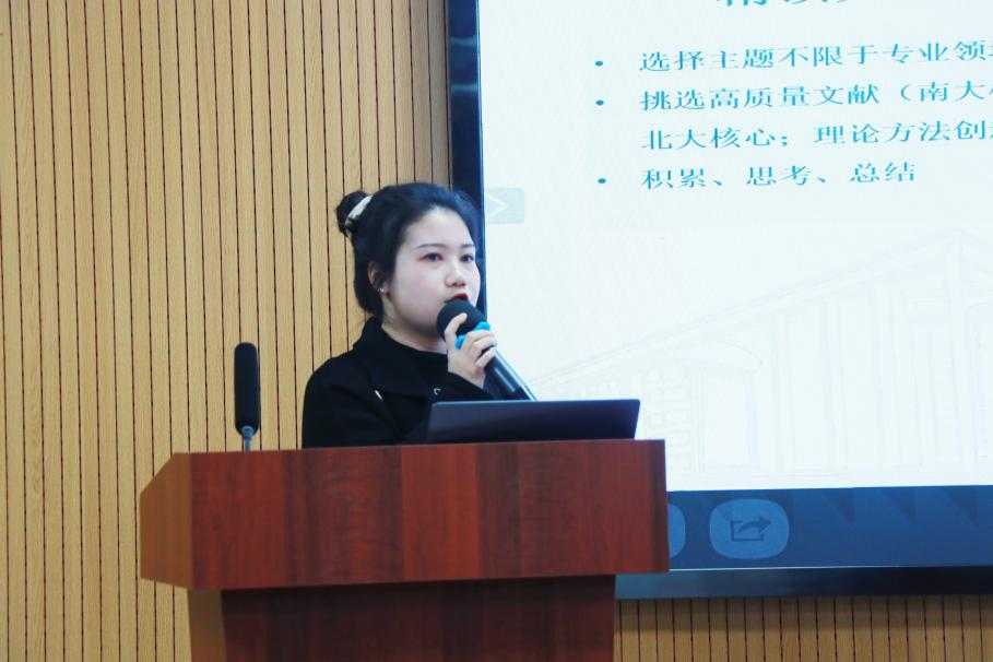 国奖获得者、2021级公共管理专业硕士研究生戴李怡详细介绍了自己从迷茫无从下手,到逐步掌握技巧,再到发表多篇论文的“升级打怪”过程。她强调,写作科研论文不是一蹴而就的,需要耐心和积累,要不断精读文献,进行思考与总结。
