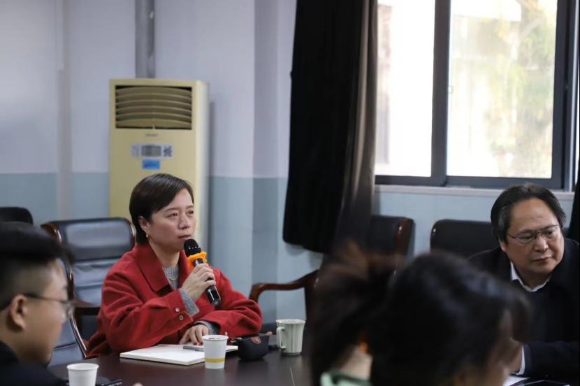 党委副书记晏妮致辞。她代表湖大马院对山南市东辉中学参与本次活动的师生表示了热烈欢迎,同时也对湖大马院“青马宣讲团”的组建和工作开展情况进行了介绍。晏书记表示,大家虽然在物理空间上相隔遥远的距离,但通过网络平台连线的方式,让我们感觉彼此靠得很近。晏书记说,今天我们通过线上线下宣讲的方式来纪念一代伟人,激励新时代青年肩负使命、接续奋斗,把实现中华民族伟大复兴的史诗继续谱写下去。这次活动方式非常特别也非常有意义,希望湖大马院和支教团以及东辉中学的师生们今后能进一步加强交流与合作,进一步围绕铸牢中华民族共同体意识开展更多丰富多彩的活动。