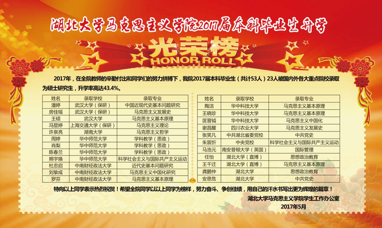 国产自拍 2017届本科毕业生升学光荣榜