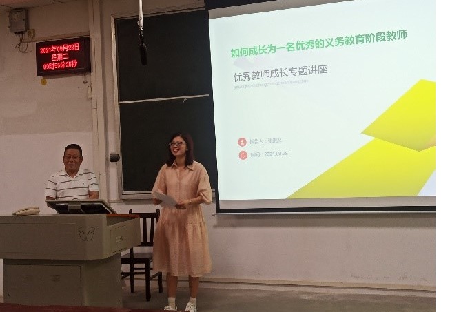 最后,张老师从切身经历谈如何成为一名优秀的义务阶段教师,他说“忠于教师职业,才能做一辈子”,鼓励同学们相信自己能够并努力成为一名优秀的教师。胡银银老师在总结中强调同学们要注重专业素养、强化基础训练,在未来的学习生活中作出自己的选择,鼓励有志于此的同学们向着成为一名光荣的人民教师不懈努力。