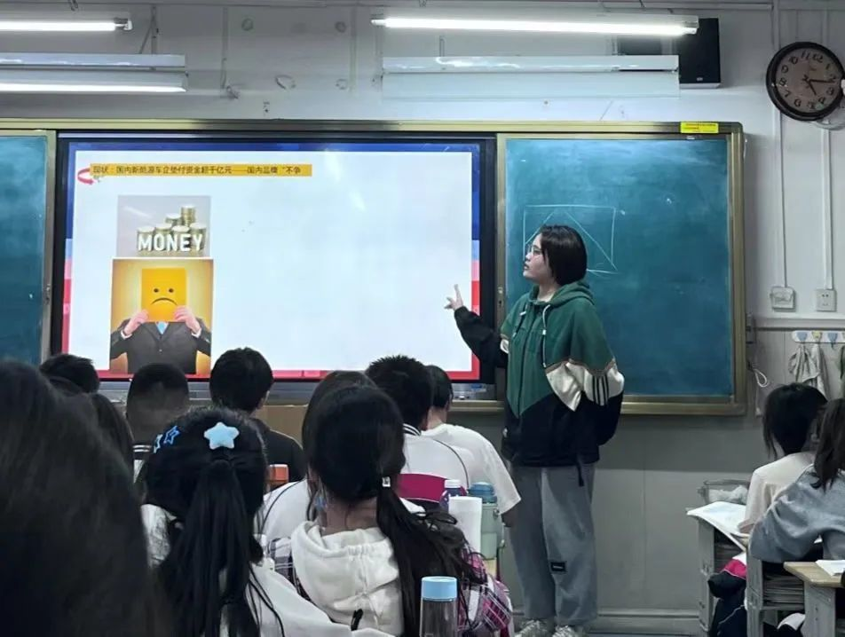 小组成员王珺璇谈到,眨眼间,实习已经已经过了大半。时别三年再次来到高中,身份已然转变,我深刻体会到时代的变化,欣喜现在的教具越来越现代化,欣喜现在的学生越来越优秀,欣喜现在的教育越来越注重学生的全面发展。我自己真正来到老师的位置,望着讲台下的学生们的时候,才能真正体会到老师身上所被赋予的责任。特别感谢我的两个指导老师,在我茫然的时候总能给予我帮助,让我更好更快地适应。在进行了一系列班主任工作和备课过程中,我也愈发体会到老师的不易,让我也更加珍惜这次宝贵的机会。在此期间,我也看到了自己的不足,在此之后我会更加努力学习,努力提高!在这次实习中我们收获了很多宝贵的财富,来自指导老师的悉心关爱,来自学生信任的眼神,来自自己的不断超越。与此同时,我们也深刻地了解教师的伟大与不易,认识到教师工作不仅仅是"传道,授业,解惑",最重要的是爱学生。