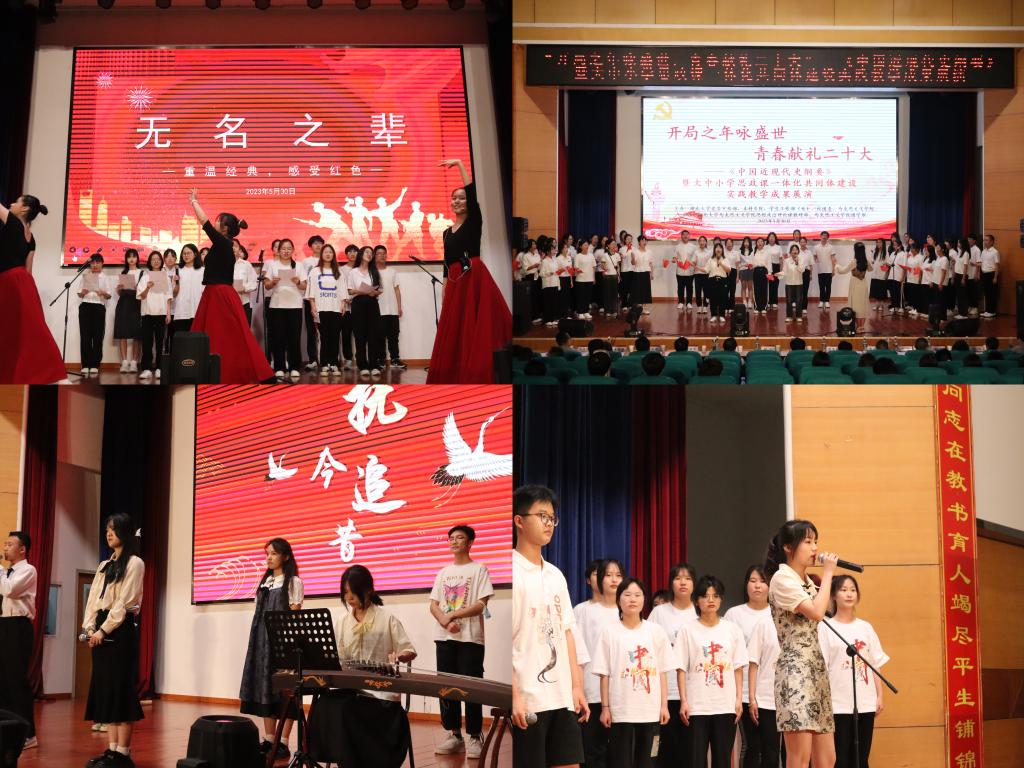 “大中小学思政课一体化共同体”示范校建设,夯实“大中小学思政课一体化共同体”建设基础。此次活动以课堂为单位、以学生为主体,对激励同学们进一步坚定“四个自信”,勇担强国使命有着重要意义。