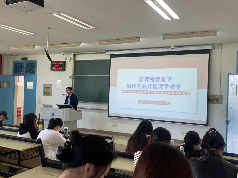 程家友副校长在讲座中运用生动的语言分析了当前中学政治课面临的问题,并为同学们提供了课堂教学的建议。在总结时,胡银银老师感谢程家友副校长为大家带来的精彩讲座,鼓励同学们保持热情、永远热爱,争取在未来成为一名优秀的教师。
