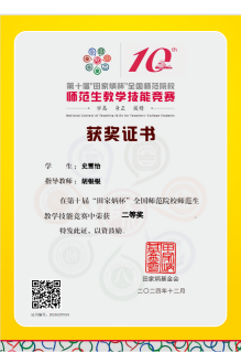 2022级思想政治教育(师范类)专业学生史雪怡荣获高中政治组全国二等奖。