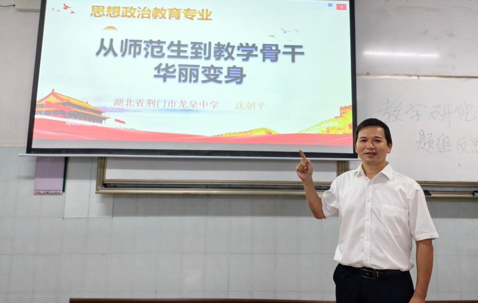思想政治教育专业1998级校友沈朝平老师,开展题为“从师范生到教学骨干华丽转身”的讲座,由政教系主任胡银银主持,2023级政教系全体学生参与。