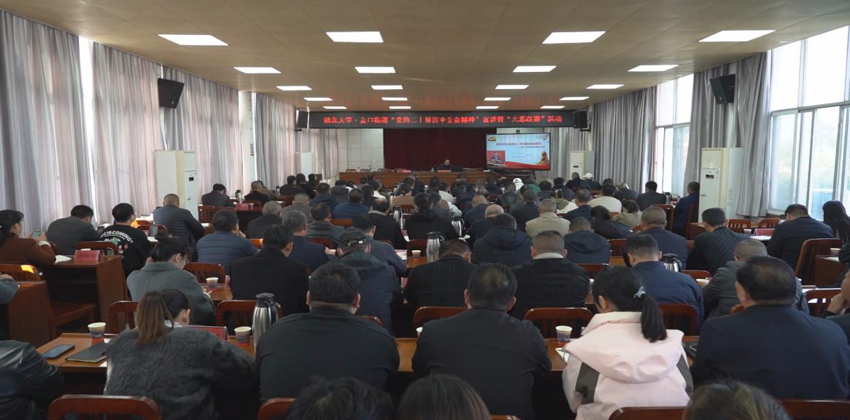 院长熊友华、副院长易振龙、思政课部主任于桂凤、政教系主任胡银银一行赴武汉市江夏区金口街道,以“专题讲座+座谈交流+分众式宣讲”的形式开展党的二十届四中全会精神宣讲暨大思政课活动,为基层治理注入思想动能与智力支撑。江夏区委宣传部副部长张乐、金口街道党工委书记熊传胜以及干部群众100余人参加活动。