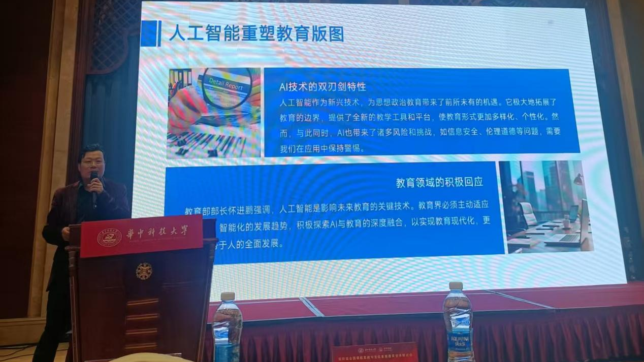 杨海军副教授、博士生周瑞琪作为分会场一的发言人,分别就“人工智能赋能思想政治教育的机遇与挑战”和“数智赋能高校思想政治教育以美育人”等主题进行发言并参与讨论。杨海军副教授同时担任分会场四的主持人,并在闭幕式上作为分会场代表进行总结性发言。