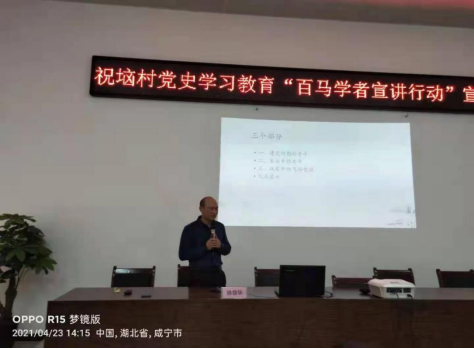 在祝垴村分会场,副院长徐信华教授以《青年与中国共产党》为题,运用大量第一手资料和经典案例,围绕“建党时期的青年”“长征中的青年”“战疫中飞扬的党旗”展现了青年在党的百年发展历程中的担当和作为,从历史到现实立体式呈现了青年的在党的引领下作出的贡献。
