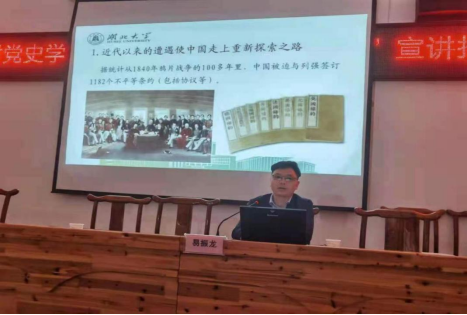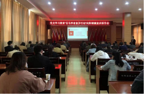 院长熊友华教授在向阳湖镇主会场作《学百年党史 聚智慧力量》的辅导报告。报告从为什么学习党史、党史的基本脉络是怎样的、党史给我们的启示三个方面展开,阐释了在百年华诞的重要时刻、历史交汇的关键节点、迈步新征程的开局之年、风险挑战纷至沓来的敏感时期进行党史学习教育的重大意义,梳理了中国共产党救国、兴国、富国、强国的辉煌历程,展现了百年党史的湖北脉动,总结和分析了百年党史的经验启示,深刻解读了“中国共产党为什么能”。