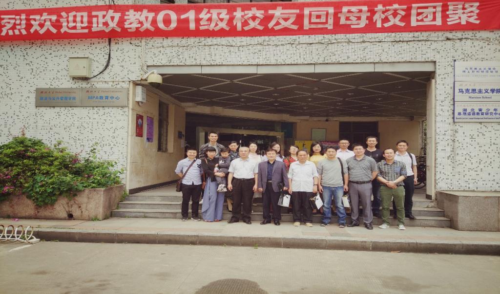 政教01级校友重返母校聚首,并举行座谈会。院党委书记汤德森、院党委副书记王雄和原政教系领导、老师与校友们在国产自拍