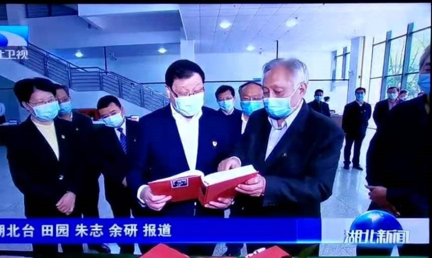 徐方平教授担任首席专家。我们在240多本著作的基础上,精选了195本,整理、研究与编纂50卷,共2000万字,将于明年作为中宣部“马工程”,湖北省向中国共产党100诞辰献礼的文化工程。已经完成了40卷,余下的10卷也完成了50%。我们有把握胜利完成这个功在当代和利在千秋的鸿篇巨制。应勇书记很高兴,仔细翻阅了第一编第一卷,对文集编纂工作及其团队同仁给予热情鼓励,并应邀与田教授合影,留下了值得纪念的历史瞬间。
