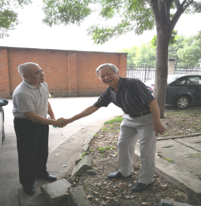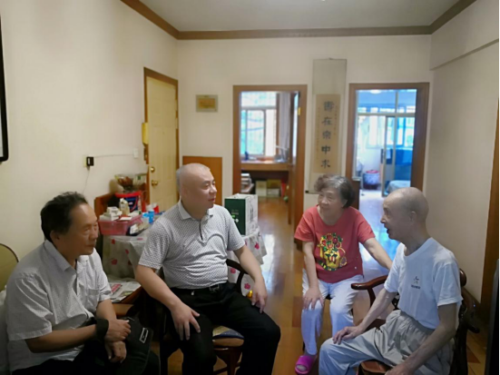 党委书记汤德森同志与院老协负责人董立仁老师看望并慰问离退休老同志梅倩、李之戍。
