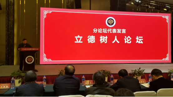 的老师参加。杨海军老师提交了《论立德树人》的会议论文,在《立德树人》分论坛进行了主题发言,论述了何谓立德树人、立德与树人的关系、为什么要立德树人、如何做好立德树人、将人类命运共同体理念融入立德树人。杨海军老师的发言受到分论坛学者的肯定,被推选为代表到大会主会场进行分论坛综合发言,在大会上介绍了国产自拍