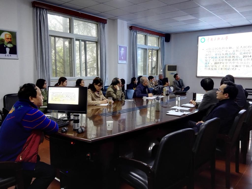 四楼会议室做了一场题为“中华民族文化传承教育应注意的几个问题”的学术讲座。党委书记汤德森、党委副书记王雄、副院长周芳、熊友华以及部分教师和17级研究生听取了本次讲座。讲座由国产自拍