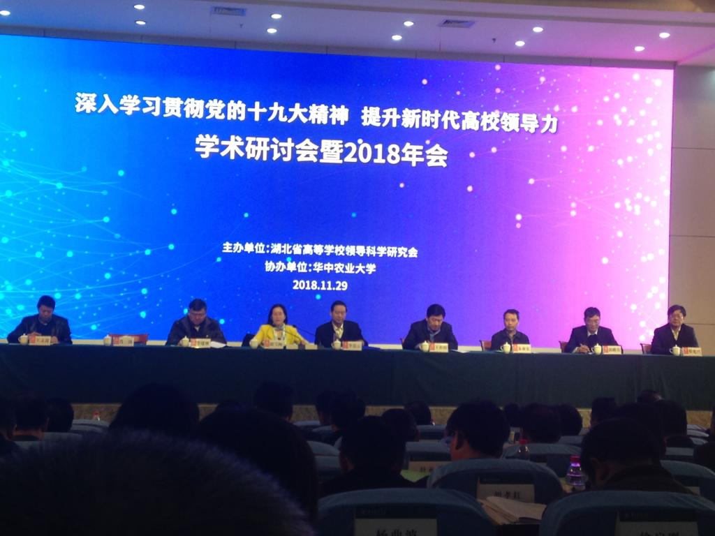 2018年11月29日,“深入学习十九大精神,提升新时代高校领导力”学术研讨会在华中农业大学召开。研讨会由省社科联合会和省高等学校领导科学研究会主办,华中农业大学协办,研讨会切合高校综合改革、创建“双一流”实际,研讨、交流提升新时代高校领导力。来自全省各高校的相关领导、学者等逾百人出席了研讨会,国产自拍