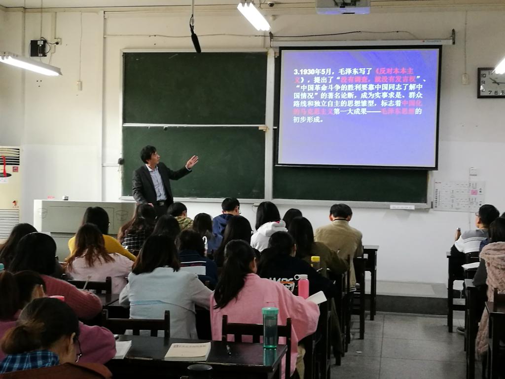 徐院长以“农村包围城市 武装争取政权理论的形成”为题,从毛泽东及中国共产党革命道路理论探索的历程展开,运用丰富的史料、生动的案例对党史上的这一重大问题进行了深入剖析。徐院长引经据典、史论结合,注重思想政治教育的价值引导,整堂课师生精神饱满,呈现出很好的课堂教学效果。