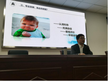 党委副书记王雄《思想政治教育专业发展》专题讲座。他从师资、就业、考研等多个角度详细分析了专业走向与未来发展优势,鼓励同学正确认识自己,树立自信,客观评价大学、专业、自我,为未来早做准备。