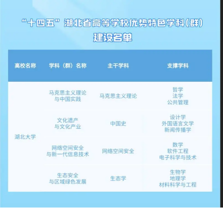 近日,湖北省教育厅发布“十四五”湖北省高等学校优势特色学科(群)建设名单,国产自拍