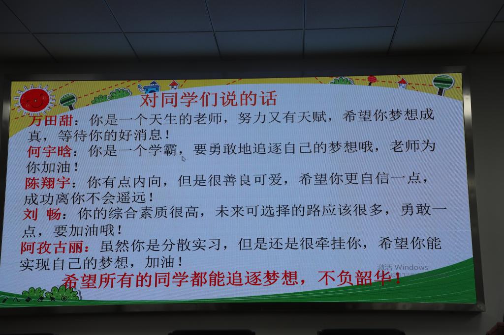 随后上台的是龚梦老师,她组织了组内每位同学发表各自的实习心得,该组同学普遍开展了形式多样的实践活动,包括带领学生参观县消防中队、国庆节升旗仪式,预防电子诈骗活动等等。龚老师还提到了自己作为一名指导老师获得的收获,包括浓浓的师生情,熟悉了中学课堂的要求和教学技巧,了解了同学们的需求,在指导过程中的经验教训也帮助自己在教学中对照提升等等。