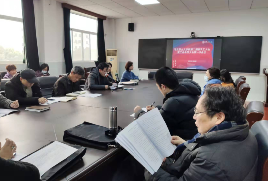 在401会议室召开第二届教职工大会暨工会会员大会第一次会议,学院领导及全体教职工参加大会。