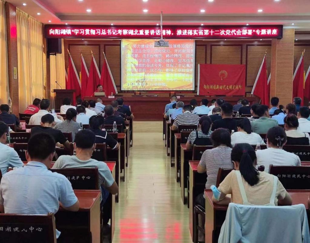 杨海军老师以“建设先行区 谱写新篇章”为题进行了理论热点面对面宣讲。咸安区委宣传部副部长熊鸣、向阳湖镇党委书记陈伟、镇长周永定等全体镇干部、驻村工作队、镇直部门负责人、村两委成员参加会议。