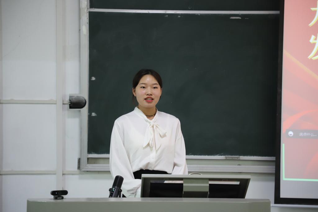 22级马克思主义理论专业新生代表赵东萍发言。她分享了研究生学习生活规划,并号召同学们时刻牢记“日思日睿、笃志笃行”的湖大校训,秉承“自强不息、克难奋进”的湖大精神,志存高远,努力成为堪当民族复兴重任的有志气、有骨气、有底气的时代新人。