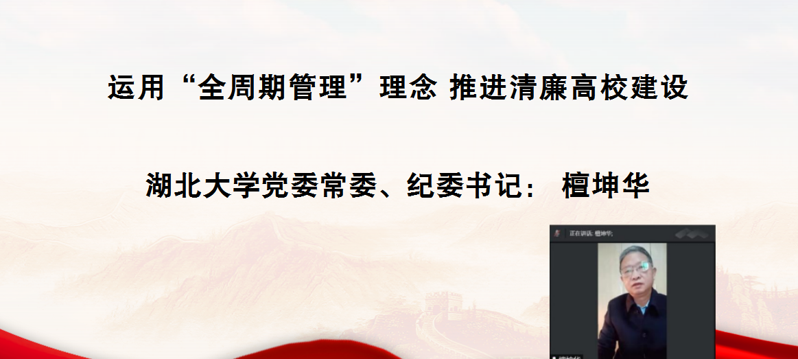 廉政文化研究中心专题研讨活动致以崇高敬意。他提出清廉中国建设需要形成廉洁文化的沃土,只有廉洁文化的土壤才能孕育出“廉荣腐耻”理念的文明之花。随后,他从实践出发,作了题为《运用“全周期管理”理念推进清廉高校建设》的报告,具体阐述了“全周期管理”理念的概念、清廉高校建设如何运用“全周期管理”理念和清廉湖大建设的实践探索。他运用“全周期管理”理念对国产自拍