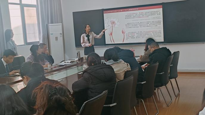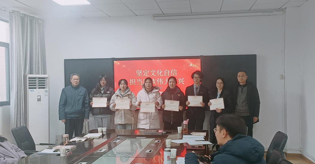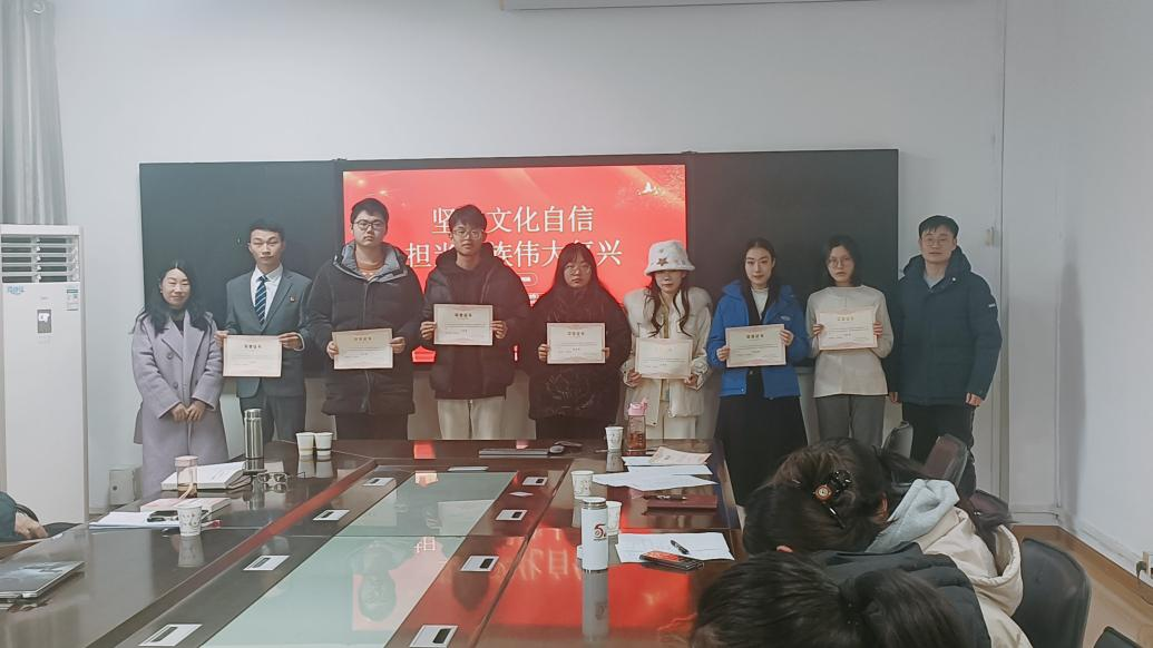 五楼会议室何克祥教授用“五个有”来总结了这次活动,分别是有意义、有效果、有味道、有激情、有特色,对本次活动给予了高度的赞扬;同时指出了一些不足,有些小组在对习近平文化思想的部分讲述中,用词不够规范,了解不够深入,主题有些偏移。紧接着,学校宣传部副部长李书指出,这次活动很有意义,各组准备充分,展现了学习习近平文化思想的阶段性成果,同时锻炼了学生们的表达能力,并鼓励学生们以此活动为契机,继续深入学习和研究习近平文化思想的内容和原创性观点,努力学思践悟,积极参加各类习近平新时代中国特色社会主义思想学习宣讲活动。随后概论课负责人胡银银老师进行总结。最后按照评分由评委为一到三等奖和优秀奖组别进行颁奖。
