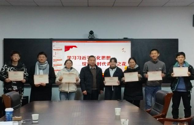 二号会议室张丽娜书记作为评委代表对参赛小组进行点评。第一个方面是对选手的精彩表现点赞:一是同学们准备充分、条理清晰、环环相扣;二是同学们分享时精神饱满、生动活泼、精彩纷呈。第二个方面是对选手提出了几点希望:一是希望同学们学思用贯通,知信行统一,紧紧围绕习近平新时代中国特色社会主义思想的学习要求紧紧结合个人实际去理解与思考;二是内容的选取能够吸引人,使思政课更加生动有趣。何顺进部长对此次活动进行总结,提到小与大的关系,同学们能够用小切口去展示习近平文化思想这一大话题;二是点与面的关系,从点的角度拓展到面,希望同学们能够结合自身的专业去理解习近平文化思想。最后,张丽娜书记与何顺进部长为获奖选手颁奖并合影留念。