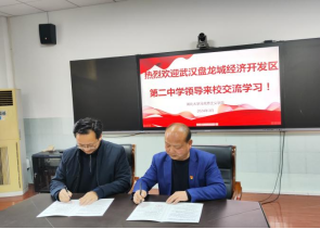 院长熊友华与盘龙城经济开发区第二中学校长王彦章签订协议)
