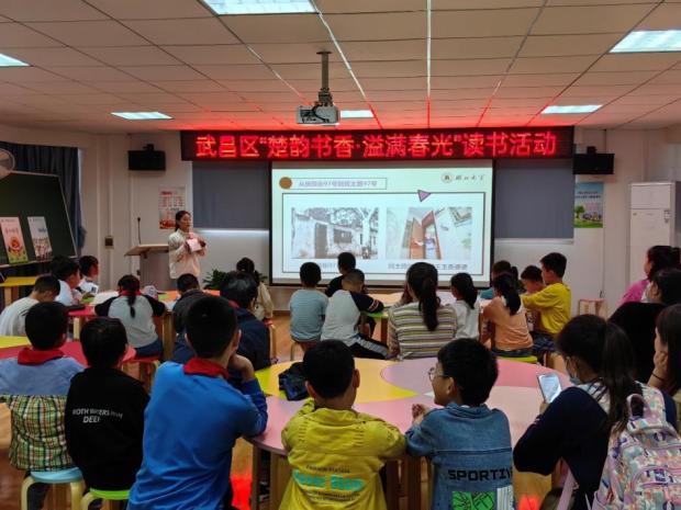 活动伊始,陈宇引用崔颢的《黄鹤楼》一诗,将黄鹤楼的历史娓娓道来:从吕洞宾飞升成仙的圣迹、仙人子安乘黄鹤的传说,到费祎报恩画黄鹤的故事,再到黄鹤楼下孕育早期党组织的星星之火,仿佛带领三道街小学的孩子们穿越时空,亲历那一段段辉煌的历史。