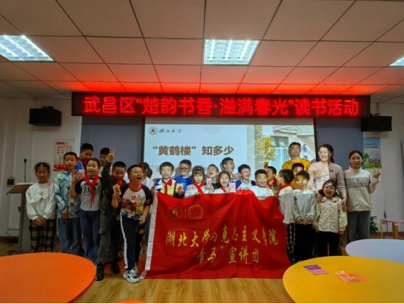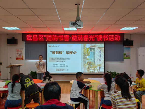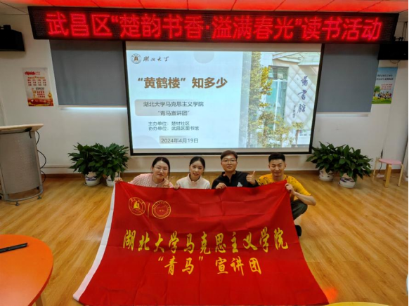 “青马”宣讲团联合中华路街道楚材社区及武昌区图书馆开展“‘黄鹤楼’知多少”主题宣讲活动。本次活动由宣讲团成员陈宇、李雨婷主持,宣讲团成员杨昕怡、王润东及杨浩余参与此次活动。