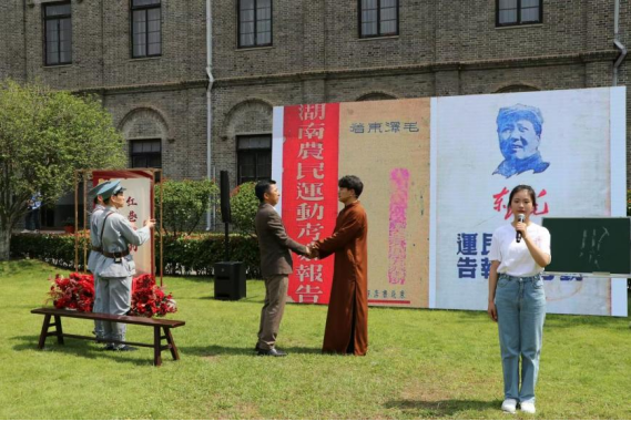 联合武汉革命博物馆,借助农讲所场地,以“忆峥嵘岁月,颂盛世华章”为主题,在武昌农讲所大操场隆重举办了《中国近现代史纲要》课程及“国产自拍
