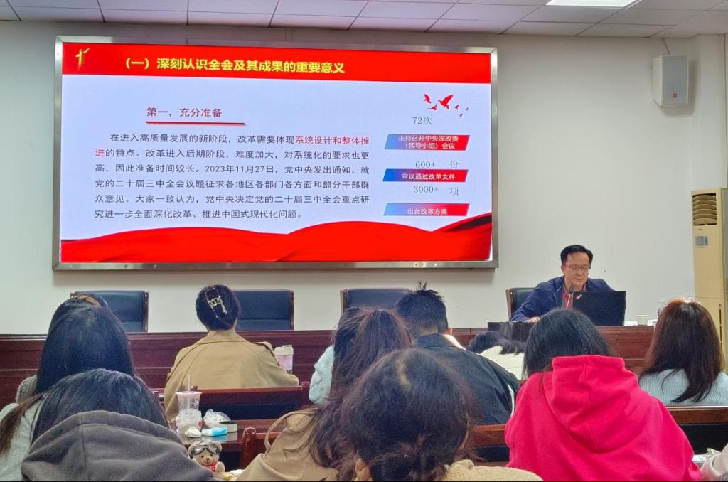 11月8日,一场以“党的二十届三中全会精神学习”为主题的党课在二号教学楼410会议室顺利举行。本次党课由国产自拍